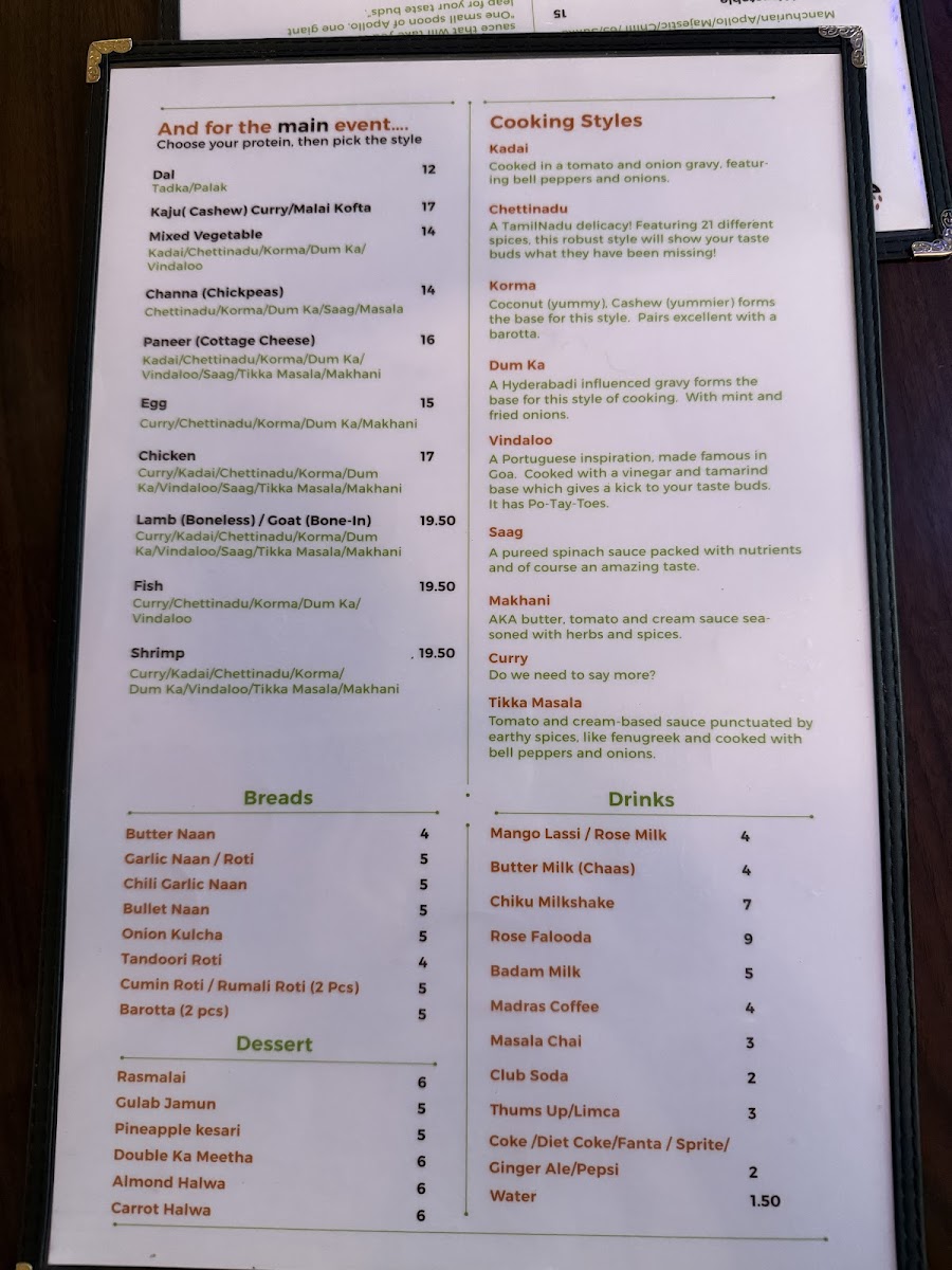 Available styles: Curry/Chettinadu/Korma/Dum Ka/Vindaloo